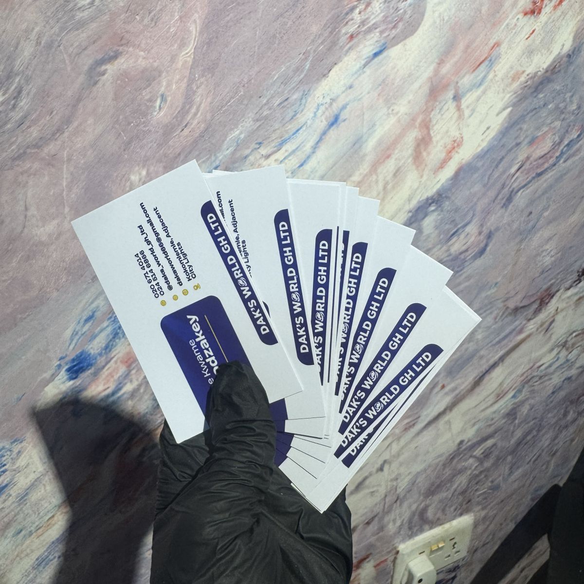 Business Cards, Gift Cards, Letterheads, Flyers, Posters, Waybill, Invoice & Receipt Books, Bookmarks, Invitation Cards, Brochures, Magazines, Trifold Leaflets, Books, Notepads, Sticky Notes, Clothing Tags, Paper Bags, Folders, Certificates, Chocolate Branding, Packaging, Boxes, Notebooks, Calendars, Exercise Books, Textbooks, Envelopes, Exams Papers, 3D Spot Varnish, Gold & Silver Foil, Matte, Glossy & Soft Touch Lamination, Pouch Lamination, Polar Cutting, Etc.